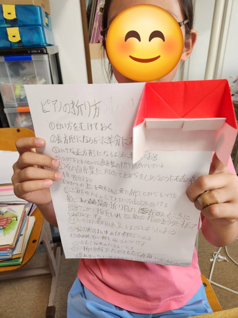 そして折り方の手順を書いていきます。Tちゃんは折り紙が大好きです!