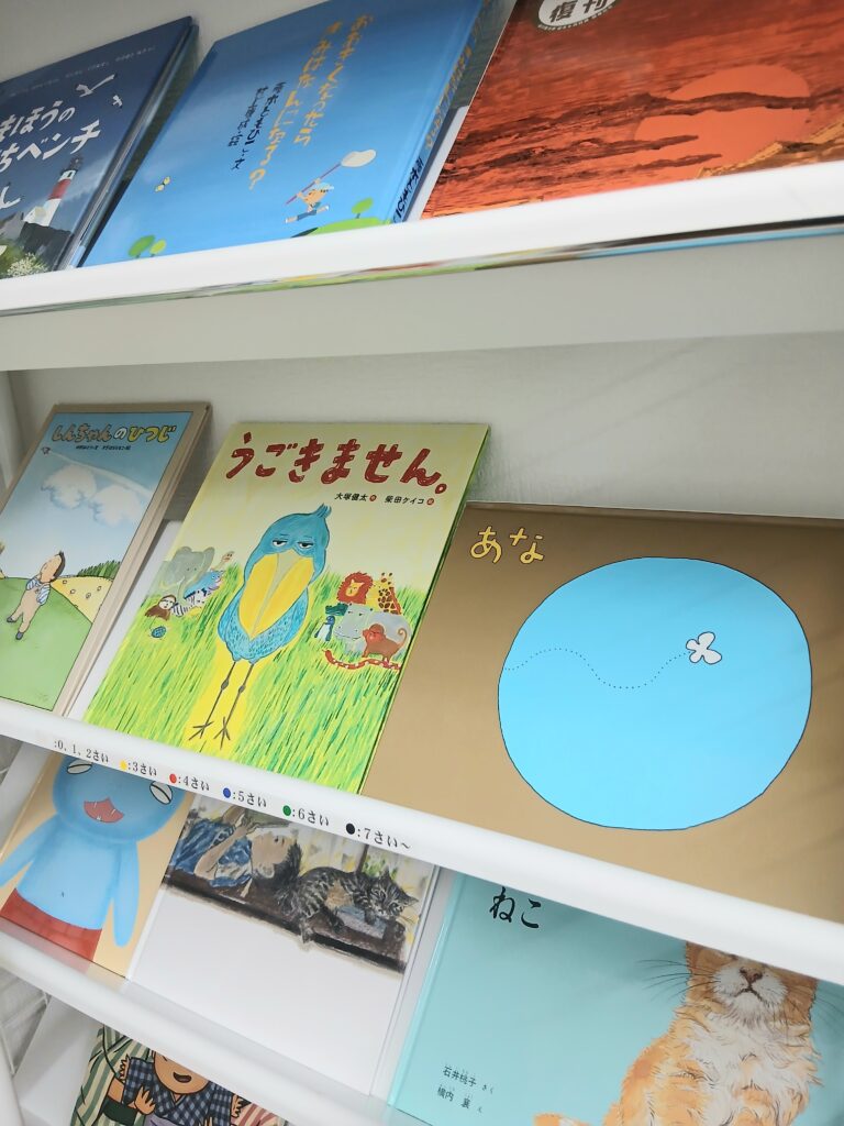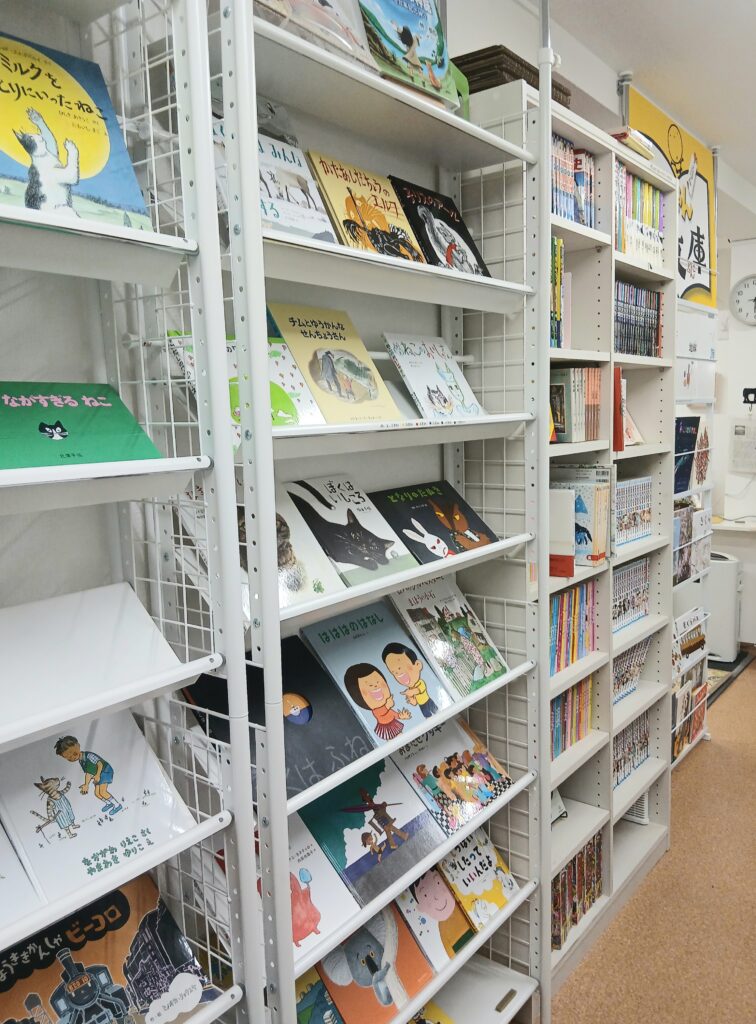 絵本は新品のものをご用意されていて、幼児さんから大人までが楽しめる、いろいろなラインナップをご用意されています。