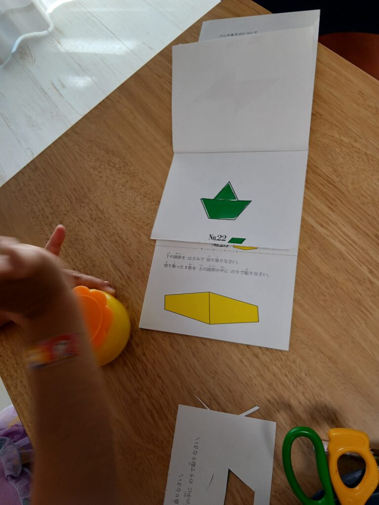 「パッチあそび」というペーパーパズル教材にチャレンジ🎵え!?この形が、この形にぴったりと入ってしまうの!?図形の意外性や面白さを楽しもう!空間知覚やひらめき頭脳を養おう。ハサミやのりを使って仕上げよう。パッチあそびは、なんと漢字を覚える力も育ちます!