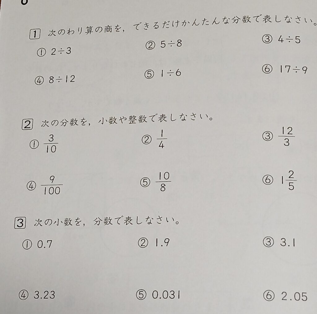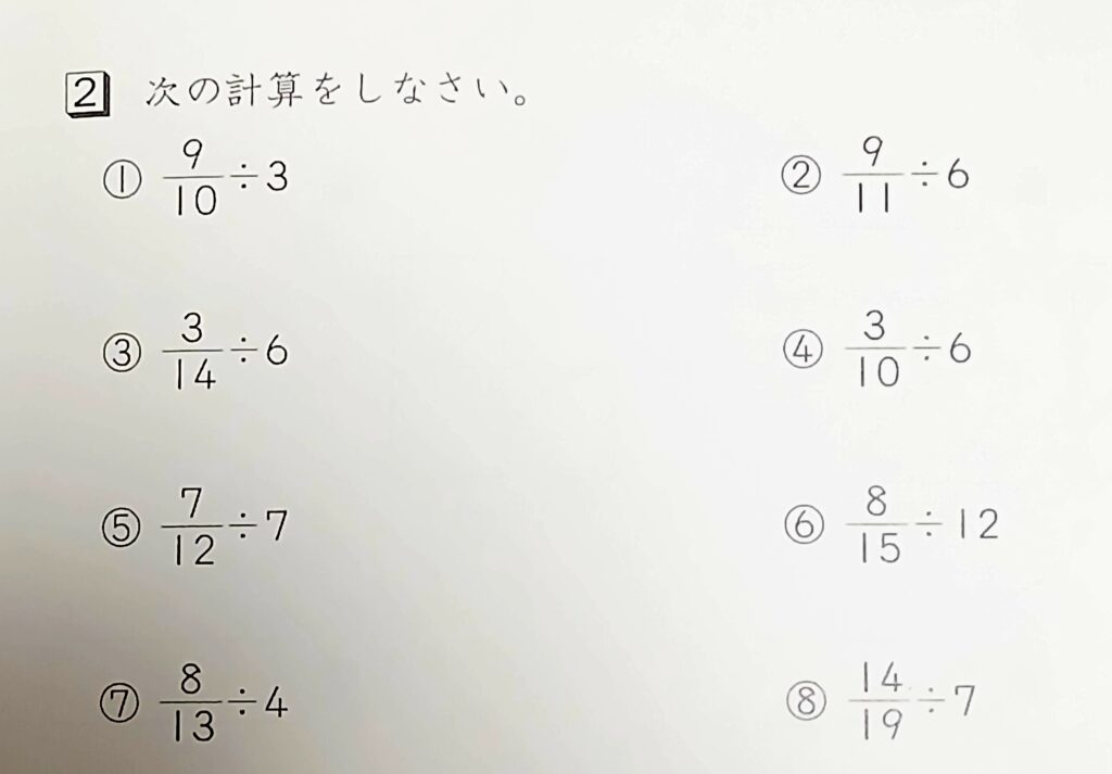 算数は分数の基本、分数と割り算、分数の割り算を学びました。